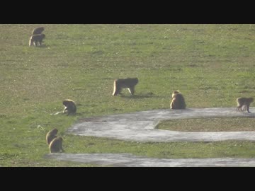 ふくしまスカイパークに現れた野生の日本猿群団
