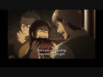 進撃の巨人 英語吹替版 第49話 You can't eat the whole thing alone, you pig! Ahhhh! You're eating me!