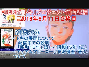 2016-08-11 2枠目 FUNDIY「トキ」プロジェクト作画配信