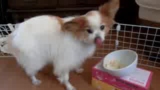 ガツガツ食べるワンコ(パピヨン)2