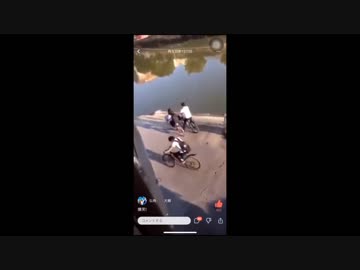 チャリで川に落ちていく高校生