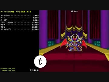 【45秒の】SFC TAS ナイトガンダム物語 大いなる遺産 1:22:39.793 1/4[第1章 23:33.995]【短縮】
