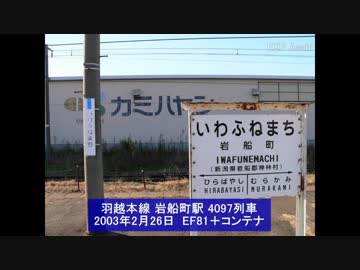 【音鉄】羽越本線 岩船町駅 下り貨物列車通過音 2003年2月26日