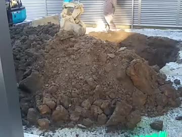バックホーでの除染廃棄物の掘出し作業