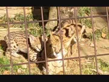 狩りごっこする双子のサーバルキッズ (多摩動物公園)