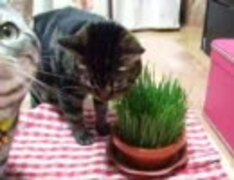 うちの猫がひたすら猫草を食す動画