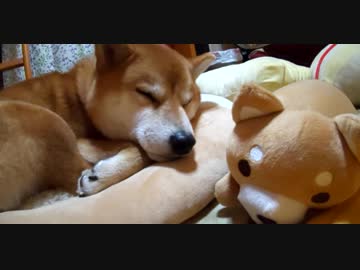うちの、おにゅーの寝床で寝てる柴犬くん