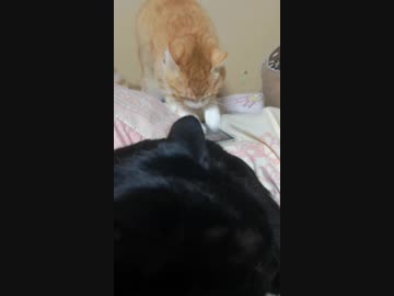 スマホの着メロを必死で止めようとする、茶トラりんちゃん
