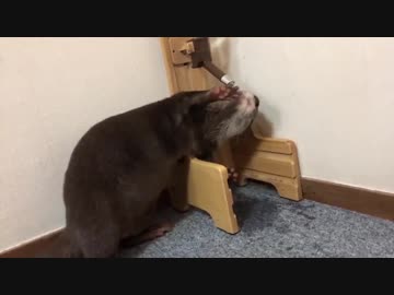 癖の強い水の飲み方を後輩に教えるカワウソ