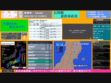 強振Lv.1000突破 【緊急地震速報(予報)】3月13日 13時48分 紀伊水道 震度4