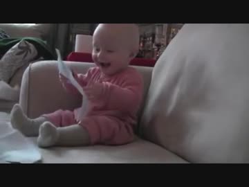 紙を破く音で笑う赤ちゃんライド:草