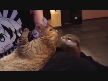 ネコさんをヨシヨシしてたら自分もしてほしくてグズるカワウソご先祖ちゃん