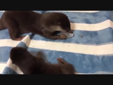ご先祖ちゃんのご飯入れを取っちゃうカワウソちぃたん