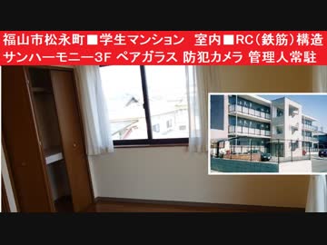 福山市松永町■学生マンション 室内■RC(鉄筋)構造 サンハーモニー3F ペアガラス 防犯カメラ 管理人常駐