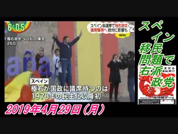 23すまたん、スペイン、移民問題で右派政党。菜々子の独り言 2019年4月29日(月)