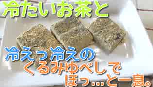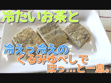 冷たい緑茶によく合うんです ( ^^) _U~~ 黒ゴマの風味が香ばしい♪サイリウムでくるみゆべし風くるみ餅