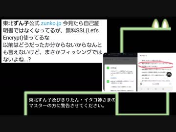 【注意喚起】東北ずん子公式が自己証明書から無料SSLになっている模様【フィッシングで使われることもある?】