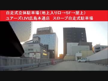 自走式立体駐車場(地上入り口→5F→屋上) ユアーズLIVI広島本通店 スロープ自走式駐車場 広島市中区袋町