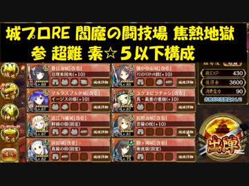 城プロRE 閻魔の闘技場 焦熱地獄 参 超難 素☆5以下構成
