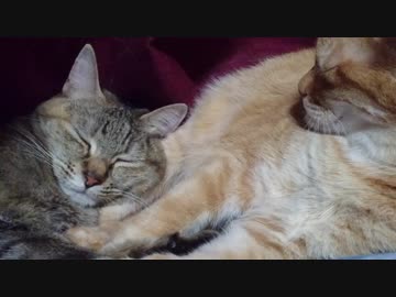 拾いねこ@生後2547/2514日目 こんな蒸し暑いなかでも仲良しさんです。