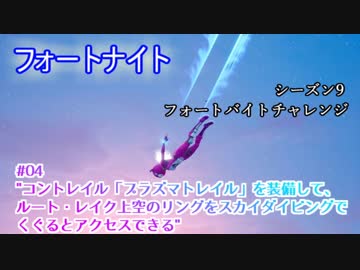 【フォートナイト】シーズン9フォートバイトチャレンジ04"コントレイル「プラズマトレイル」を装備して、ルート・レイク上空のリングをスカイダイビングでくぐるとアクセスできる"