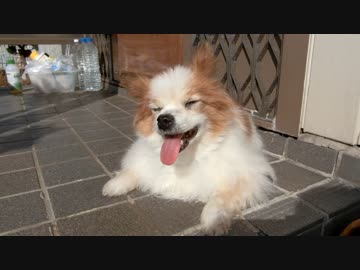 暑いけど日光浴が気持ちよさそなワンコ(パピヨン)