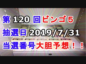【ビンゴ5予想】第120回ビンゴ5「抽選日:2019/7/31」の当選番号を真剣に予想してみた(俺のビンゴ5予想)[俺のシリーズ]