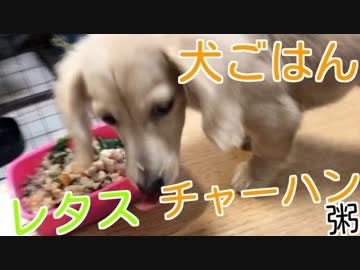 【犬ごはん】レタスチャーハン粥を作ってダックスフンドに食べさせてみた(YouTubeで『ワンチュー犬』を検索!)