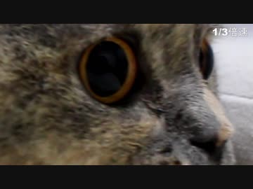 【猫の特性】猫が獲物に飛び掛る瞬間の瞳孔が開く様子ががよくわかる動画