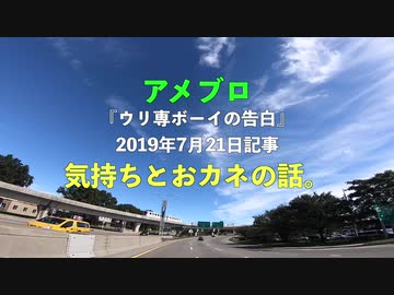 アメブロ【ウリ専ボーイの告白】2019年7月21日記事☆気持ちとおカネの話。