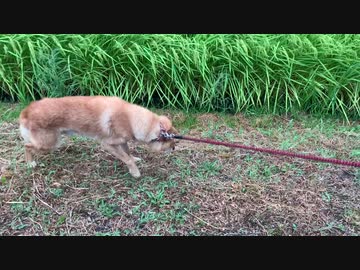 台風だから早く帰りたい飼い主VSまだまだ散歩したい犬