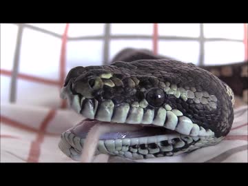 ネズミを丸呑みするカーペットパイソン