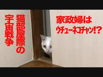 オッドアイの白たぬき(猫)、家政婦スタイルで覗かれる