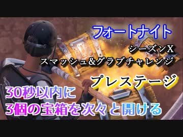 【フォートナイト】シーズンXスマッシュ&グラブチャレンジプレステージ"30秒以内に3個の宝箱を次々と開ける"