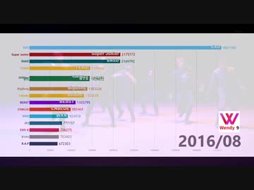 KPOP GAON総売上棒グラフ推移TOP15 (男女グループ全部含め、2019年5月分まで)