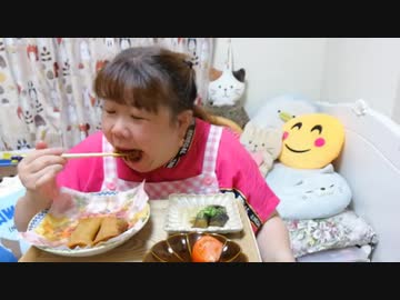 【ニートデブ】夕御飯に糸こんのチャプチェの春巻き&茄子の煮浸しを食べる!□