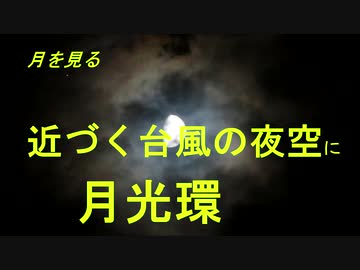 月を見る 近づく台風の夜空に月光環