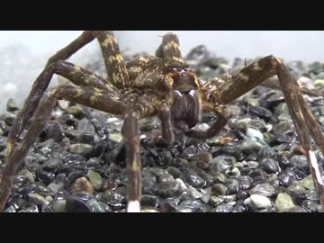 [閲覧注意!!] 再編集 ハシリグモにヌマエビを食べさせてみた。 (Dolomedes yawatai)
