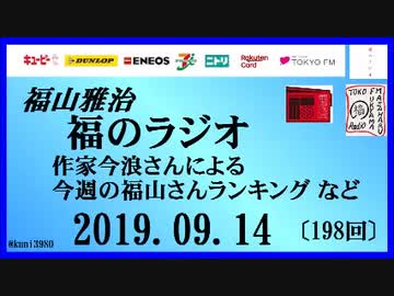 福山雅治 福のラジオ 2019.09.14〔198回〕作家今浪さんによる今週の福山さんランキング など