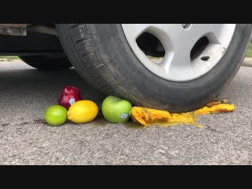 果物を車で潰してみた