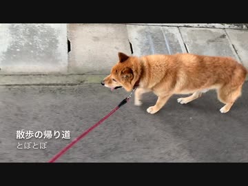散歩の帰り道しょんぼりして歩く犬