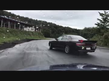 雨のエビス北コースでガバガバ走行している