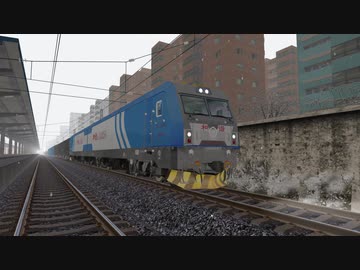 HXD3A型電気機関車、駅から混合貨物列車を牽引して出発するシーン