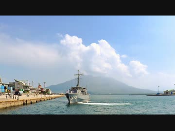 ある日の桜島(その169)<出航する掃海艇「くろしま」と桜島>