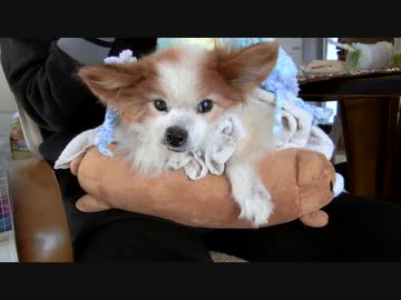 飼い主の趣味の編み物に付き合わされるワンコ(パピヨン)2