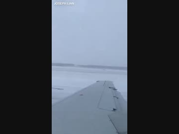 【アメリカ】着陸時に雪で滑って滑走路から外れる