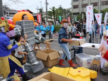 岐阜県多治見まつり、20191103キン肉マンパレード前2、パレードでのUSA打ち合わせ