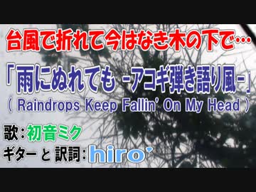 【台風で折れた!?】初音ミク「雨にぬれても」日本語詞アコギ弾き語り風カバー【木の下で】