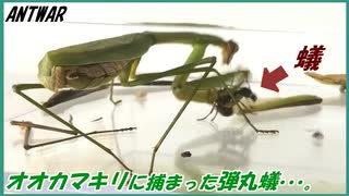 オオカマキリに捕まった弾丸蟻(パラポネラ)の末路。