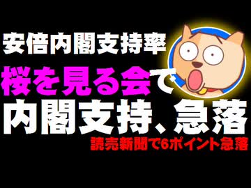 安倍内閣支持率が読売で6ポイント急落 -「桜を見る会」疑惑が影響か、高知県知事選に影響も